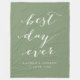 En bröllopsdag minnesfilt som innehåller frasen "bästa någonsin" i det vita moderna stil-typsnittet för kalligrafi på en grönt. Anpassa med namn och bröllop-datumet.