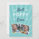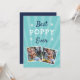Fira en älskad Poppy i Fars dag med den här coolan fotokortsdesignen som innehåller två favoritfoton av hans barnbarn med frasen "best Poppy ever" i vitt och blått tecken på akvatisk bakgrund. Lägg till ett förtryckt anpassningsbar på baksidan.