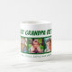 Det här kaffet mugg innehåller den fetstilta texten"Bästa Pappa någonsin" och tre foto ramar för bilder av barnbarn eller farfar. Grönt fet text "Bästa Grandpa någonsin" visas ovanför bilder och anpassningsbar med foton nedan gör att du kan anpassa dig efter namn.