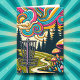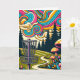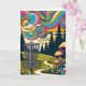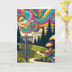Jag önskar dig den bästa födelsedagen efter paragraf. En unik golfbana med färgämnen i fält i retro-svampar, gräs träd, färgstarka virvelmoln i vintage färg som blått, grönt, rosa och orange.