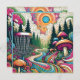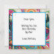 Jag önskar dig den bästa födelsedagen efter paragraf. En unik golfbana för färgämnen i ett fält av retro-svampar, gräs träd, färgstarkt virvelmoln, solljus i vintage färg som blått, grönt, rosa och orange.