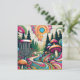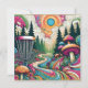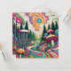 Jag önskar dig den bästa födelsedagen efter paragraf. Ett golfmatriskort för disken till henne. En unik golfbana för färgämnen i ett fält av retro-svampar, gräs träd, färgstarkt virvelmoln, solsken i vintage färg som blått, grönt, rosa och orange.