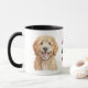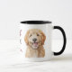 "Bästa HUND Mamma" deklarerar denna söta mugg i mitten. Bilden på varje sida är en bedårande bild av en blond Goldendoodle. Perfekt för Mors dag eller hennes födelsedag! All text är anpassningsbar, så du kan ändra den för Pappa på Fars dag också.