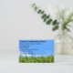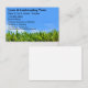 Bästa visitkortsmall för gräsmatta- och landskapstjänster skapat med en toppen closeup-grafik på framsidan gräsmatta och bort himlar i bakgrunden med ditt företag eller namn och en enkel telefonkort som du kan anpassa kanten.