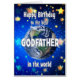 Fira din gudfar med en kosmisk tvist! Det här kortet har en hisnande syn på jorden från rymden, med det hjärtliga budskapet "Grattis på födelsedagen till världens bästa gudfader". Ett perfekt sätt att visa hur mycket han elak till dig - oavsett avstånd är han alltid ditt nummer ett.