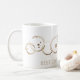 Kaffe-Ringar design i på vit bakgrund, med anpassningsbar SHOP-NAMN i brunt. Enkel att anpassa text, färg, teckensnitt. Underbar för ANY Coffee Shop, Coffee Älskare, Event, Souvenir. Artisan, unik, monokromatisk. Blanda och matcha hela samlingen av kaffe/Roligt Mugg.