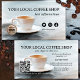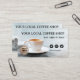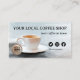 Konstnärlig visitkort med en målning av en kopp kaffe på en neutral bakgrund. Mallar för sociala medier finns tillgängliga samt en logotypmall. På baksidan finns en lättanpassad QR-kodmall.