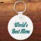 Nyckelring med Världens bästa mamma i 3D blågrön text. Runda och fyrkantiga nyckelringar finns i flera storlekar.
