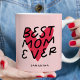 Modern och söt Mors dag-kaffe mugg eller te mugg med rött hjärta och svart handstil för Best MammaJust på rosans bakgrund. Sätt in vilken namn du vill och du får en söt personlig mors dag mugg!