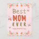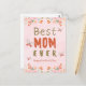 Det här charmerande Mor-dagskortet är ett firande av moderns kärlek, försett med en härlig mängd vattenfärgbilder. Uttrycket "Bästa MAMMA EVER" står i centrum i ett djärvt och överdimensionerat brev, med en blandning av varma terrakotta och jordnära olivtoner som förmedlar styrka och ärlighet. I bakgrunden tvättar mjuk rosa en ömtålig arbetsyta för meddelanden och illustrationer. Tjuliga blommor i korallets nyans och persikoblommor längs grund kant, som ger tillväxt och näring - en nod till mor roll. Fintvätt av ömtålig fjäder i en genomskinlig orange vänd runt ord, som symboliserar omvandling och den milda beröringen av mor. Att fullborda utformningen är det underskattade men söta budskapet "Lycklig Mor's Day" vid grund, som garanterar att kortets syfte är tydligt och fokuserat. Detta vykort blandar värme, kärlek och naturens skönhet för att skapa ett hjärtligt erkännande för Mors dag.