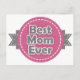 Cute Best Mamma Enånsin-etikettdesign i rosa och grått med vit stygn gräns. Söt gåva till mor på Mors dag eller hennes födelsedag.