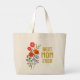 Anpassningsbar Bästa Mamma någonsin stor tote Bag, med elegant guld typografi. Modern röd, orange och lila vilda blommor. All text är anpassade, så att du kan ge en unik gåva till mamma.