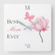 Fira den fantastiska kvinnan i ditt liv med denna eleganta "Bästa mamman någonsin" rosa lotus- och fjärilsklocka. Med mjuk blomsterkonst, graciös typografi och en lugn feminin estetik blir denna design en hjärtlig gåva som hon kommer att värna om varje dag.