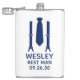 Denna plaska är perfekt för den bästa mannen. Om alla i din bröllopsfest kommer att ha kostym, skulle denna design med hängslen och en blå slips vara perfekt för alla. Ledig men ändå formell. De skulle vara bra för en svensexa eller helg. Titeln kan ändras till brudgum, brudgummens vän, platsanvisare, etc.