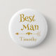 Hedra den bästa mannen med stil med denna eleganta och personliga bröllappsknapp. Med förgylld text och ett charmigt hjärta-och-pil-motiv är denna souvenir tryckt med den bästa mannens namn - perfekt för förfestligheter och firande på bröllopsdagen.