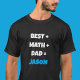 Om din pappa är den bästa pappan och också är intresserad av matte, är det här den perfekta t-shirten för honom. Designen har en svart bakgrund (men du kan välja andra färger) för en t-shirt som lyder "BÄSTA + MATTE + PAPPA = (NAMN)." Pappa kommer att uppskatta hur unik den här presenten är och kommer att njuta av att ha den här t-shirten. Den här t-shirten kommer att bli en bra present till fars dag eller till hans födelsedag. Copyright Kathy Henis