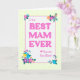 Ett söt Mors dag-kort för BÄSTA MAM NÅGON. Konstruktionen har en gult check gingham gräns runt ord, "To the BEST MAM EVER ÖVER Miles, in magenta rosa lettering on a mild texturerad white bakgrund. Det finns starka kluster av blommor med flera färgader i hörnen och ett litet rosa i magentan. Det inre meddelandet kan anpassas eller tas bort om du vill.