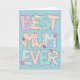 Fira Mors dag med detta blåkort som innehåller viskös text som lyder "Bästa Morsa någonsin". Inkludera ditt eget kärleksfulla ord på kortets insida utan problem med den medföljande textmallen.