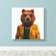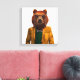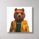 Denna utformning har en porträtt av klädda björnar i glas och jacka.