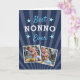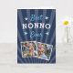 Fira en älskad Nonno denna fars dag med denna coola fotogrußkortdesign som innehåller två favoritbilder av hans barnbarn med frasen "bästa Nonno någonsin" i vit och blå bokstavsstil. Lägg till ett extra foto på insidan, tillsammans med ett förtryckt meddelande.
