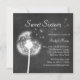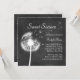 En flytande och delikat dandelion på en illustrerad kritbakgrund dekorerar födelsedagsfest inbjudan. Den kan enkelt anpassas efter vilken födelsedagspresent eller Quinceanera som helst. Om det behövs ytterligare samordnande åtgärder för party kan du kontakta oss på prettyfancyinvites@gmail.com, med din begäran.