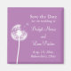 Det här är det samordnande Spara datumet för samlingen Best Önskemål bröllop. Det är dekorerat med en flytande dandelion i blomning.