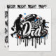 Bästa pappa fotboll son och far, graffitijul kort. Designen har modern svart manuskriptgraffiti med silhuett av en fotbollspappa som spelar fotboll med sin son. Bra present till en aktiv och sportig pappa som älskar fotboll och rugby. du kan lägga till din pappas namn det är en perfekt idé för att göra en unik personlig gåva till din pappa, farfar, make.