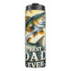 Denna dynamiska grafik har en stor, livfull basfisk som flyter dramatiskt efter att ha sköljt vatten, omgiven av fiskstavar och laser. I förgrunden visas "BÄSTA PAPPA EVER" med energi från vatten stänk. Den solbelysta bakgrunden förstärker denna spännande hyllning, perfekt för att fira ett pappa som kärlek fiskets blomstring.