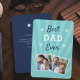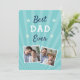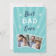Fira ett älskat pappa i Fars dag med den här coolan fotokortsdesignen som innehåller två favoritfoton med frasen "best Pappa ever" i vitt och blått tecken på akvabas bakgrund. Lägg till ett förtryckt anpassningsbar på baksidan.