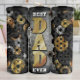 Den här bilden visningar på ett framträdande sätt "BEST PAPPA EVER" i ett fet, metalliskt guld-teckensnitt, med "BEST" och "EVER" i vitt. Texten ställs in mot en mörk, en industriell bakgrund som verkar vara sprucken eller söndersliten metall, med punkter som liknar hål. Området kring den centrala texten är ett stort antal växlar och kuggar i skuggor av guld och silver, som skapar en mekanisk, tålig estetik, perfekt för ett far som sysslar med handel eller teknik.
