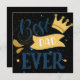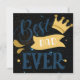Den här bilden har en högtidlig design med texten "Bästa Pappa någonsin". Ord är skrivet i blått och guld med en krona i guld ovanför "Pappa" och en banderoll i guld bakom. Bakgrunden är mörk med en starteffekt, vilket ökar det speciella och regala temat. Det ser ut som en formgivning avsedd för Fars dag eller bara för att hedra ett fantastisk pappa!