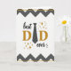 Denna fadersdags-kort har en centrerad typografisk layout som lyder ”bästa PAPPAN någonsin”, där bokstaven A ersatts med en vertikalt randig slips 👔 som antyder en stolt, nära far-och-barn-relation. Orden ”bästa” och ”någonsin” visas i svart, mindre storlek ovanför och nedanför det större ”PAPPAN”, och drar betraktarens öga inåt likt en varm kram i form av bokstäver. ”PAPPAN” visas i en bränd gyllene ton, vilket ger huvudordet en firande glans utan att behöva extra bilder. En ljus vit bakgrund håller fokus på meddelandet medan mörkgrå chevron-band inramar ovansidan och undersidan likt en prydlig kant. Tunna gyllene linjer löper längs med dessa chevroner och tillför en mjuk lyster som känns som en tyst skål 🍺. Runt texten sprids och st