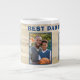Bästa Pappa någonsin Wood 3 Photo Collage Far Giant Coffee Mugg. Mugg har tre foton, modern och trendig fet typografi, namn och år. Bilder och texten står i bakgrunden med ljust trä. Lägg till namn, 3 foton och året. Gör en underbar och unik keepy för far för Fars dag, jul eller födelsedag.