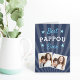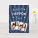 Fira en älskad Pappou denna Fars Dag med denna coola gratulationskortdesign som innehåller två favoritfoton av hans barnbarn med frasen "bästa Pappou någonsin" i vit och blå text. Lägg till ett extra foto på insidan, tillsammans med ett förtryckt meddelande.