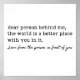 Idén och motivationen säger: Käre person bakom mig är världen ett bättre ställe med er i den.