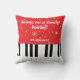 Grand piano nycklar jul Dekorativ kudde för en pianolärare, pianist, pianospelare osv. Svart och vit piano nycklar och snöflingor på rött rand, med elegantens manus "Wishing you a cheerful helgdag!" och "Best piano-lärare ever". och ett foto efter eget val. Vinterpresentidé om Helgdag för honom eller henne i elegant personlig.