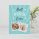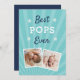 Fira en älskad Pops i Fars dag med coolans fotokortsdesign som innehåller två favoritfoton av hans barnbarn med frasen "best Pops ever" i vitt och blått tecken på akvatisk bakgrund. Lägg till ett förtryckt anpassningsbar på baksidan.