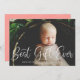 Denna söta men moderna julkort för födelseannonsering har vit kalligrafiskrift över ett helsidig, horisontellt foto. Den kalligrafiska hälsningen på framsidan säger "Bästa presenten någonsin". Denna design rymmer ett horisontellt foto på framsidan av kortet. På baksidan hittar du ett festligt rött och vitt horisontellt randmönster som kan tas bort eller anpassas. Du kan också lägga till ett annat foto eller text på baksidan genom att välja "anpassa designen ytterligare".