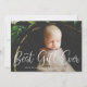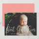 Denna söta men moderna julkort för födelseannonsering har vit kalligrafiskrift över ett helsidig, horisontellt foto. Greetings-skriften i kalligrafi på framsidan säger "Bästa presenten någonsin". Denna design rymmer ett horisontellt foto på framsidan av kortet. På baksidan hittar du ett festligt rött och vitt horisontellt randmönster som kan tas bort eller anpassas. Du kan också lägga till ett annat foto eller text på baksidan genom att välja "anpassa designen ytterligare".