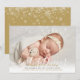 Ett elegant födelsemedanmälande julkort med ditt speciella favoritfoto, barnets namn och födelseuppgifter, samt ditt julmeddelande i modern klassisk typografi över ett chic manusmeddelande. Designad av Thisisnotme©