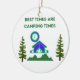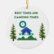 Bästa tider är lägertider med ett tält, klocka och träd i naturen på en keramisk prydnad.