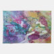 En kökshandduk med en målning av två flickavänner som utbyter blommor och hemligheter.