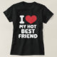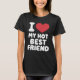 Denna t-shirt är en roligt och djärv påstående biet som firar det speciella band du med din bästa vän. Designen innehåller ett lekfullt meddelande "Jag ❤️ min Hetts bästa vän", som använder ett pulserande rött hjärta och kontrasterar vit text mot en svart bakgrund. Det är ett perfekt sätt att visa din tillgivenhet och ditt pride i din bästa vän samtidigt som du lägger till lite humor och personlighet i din garderob.