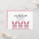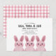 Sött kanintema för en inbjudan till Bästa väninnans eller trillingarnas födelsedagsfest med tre rosa kaninungar. Baksida med rutigt mönster.