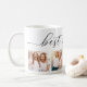 Fira vänskapen med dina besties med detta vackra fotokollage mugg med fyra favoritfoton, med "bästa vänner" över toppen i ett svart skript med text.