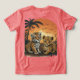 Denna hjärtslitande bild har två vackra unge, en tiger och en leopard, som leker ihop i en djungelmiljö. Den pulserande solnedgången och handflatan träd skapar en tropisk atmosfär, medan den lekande unge symboliserar oskuld och barndomen.