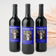 Bästa vänners foto royalblå vit text vinflaska etikett