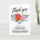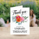 Tack för ditt kort på Alla hjärtans dag med ett söt skript, charmerande blommor i orange, rött och rosa och meddelandet: Tack för att du är min obetalda terapeut.