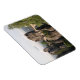 Den rektangulära fotomagneten i souvenir på stenbron i Bastei (Bastei Brücke) över floden Elbe som förbinder de koniska sten-formationerna i Elbe Sandstone-bergen nära Dresden i nationalparken Saxon Schweiz (Sächsische Schweiz) Tyskland i öster.