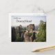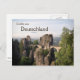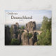 Vykort av stenbron Bastei (Basteibrücke) över floden Elbe som förbinder de ikoniska bergsformationerna i Elbe Sandstensberg vid Dresden i nationalparken Sachsiska Schweiz (Sächsische Schweiz) i östra Tyskland med texten: 'Grüße aus Deutschland'.